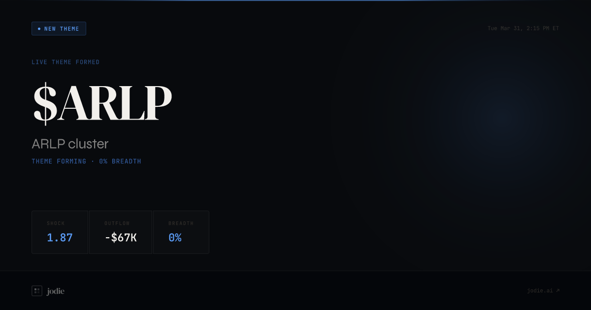 $ARLP has formed as a new live theme at Tue, Mar 31 at 2:15 PM ET. Shock 1.87, breadth 0%. Outflow −$67.3K. Story: