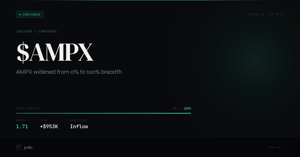 $AMPX widened from 0% to 100% breadth at Tue, Mar 31 at 1:15 PM ET. Shock 1.71. Story: