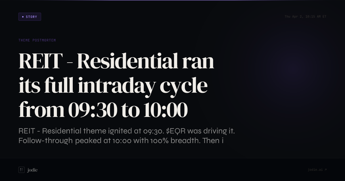REIT - Residential ran its full intraday cycle from 09:30 to 10:00