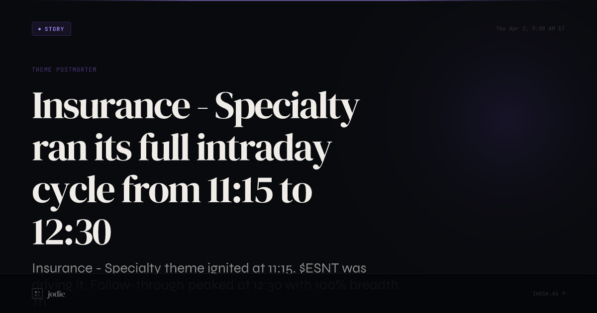 Insurance - Specialty ran its full intraday cycle from 11:15 to 12:30