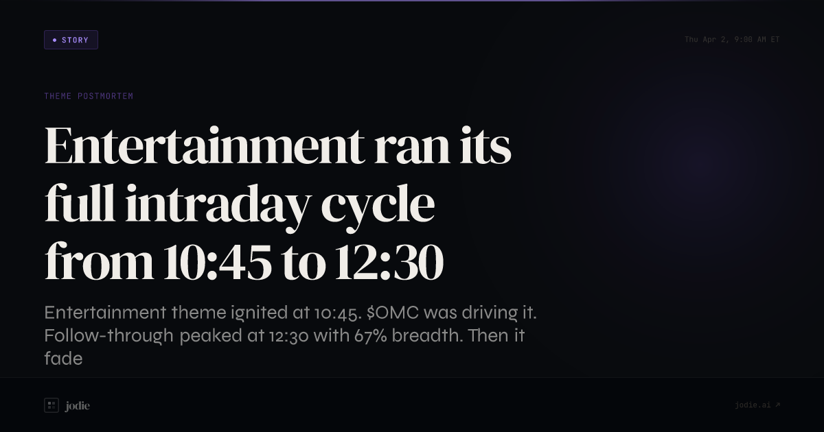 Entertainment ran its full intraday cycle from 10:45 to 12:30