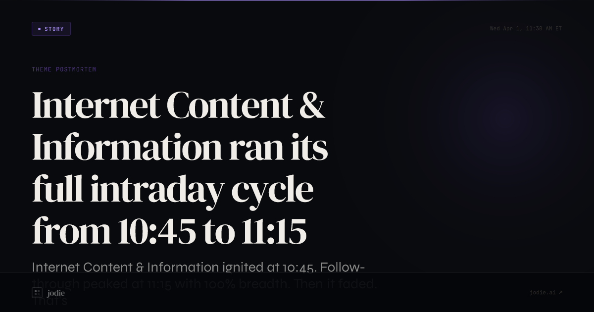 Internet Content & Information ran its full intraday cycle from 10:45 to 11:15