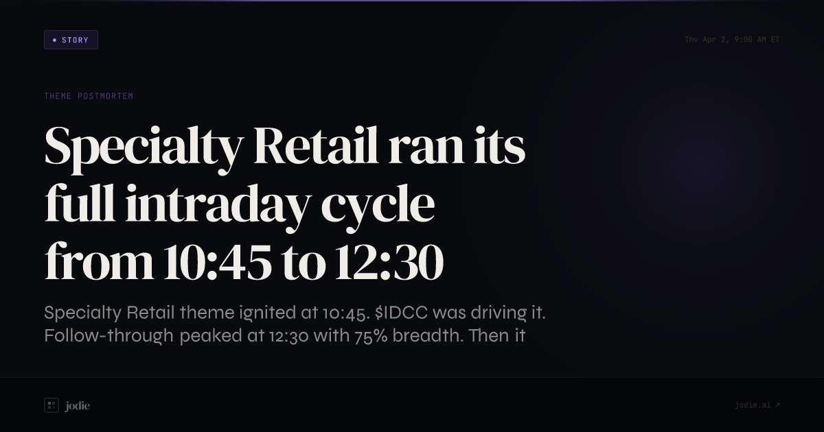 Specialty Retail theme ignited at 10:45.