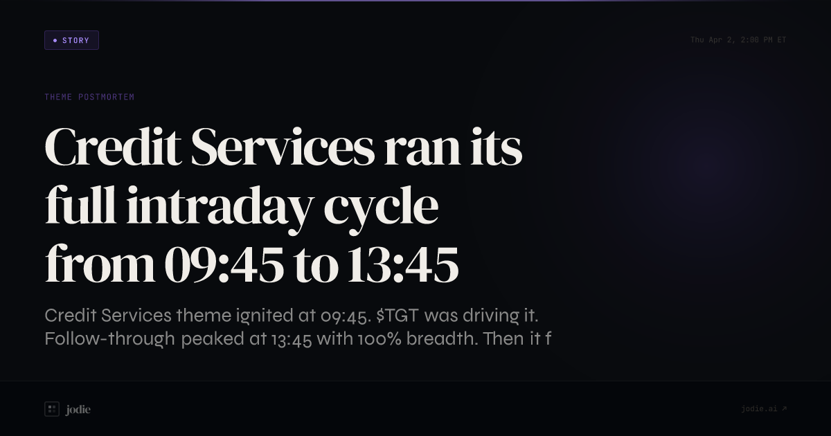 Credit Services ran its full intraday cycle from 09:45 to 13:45