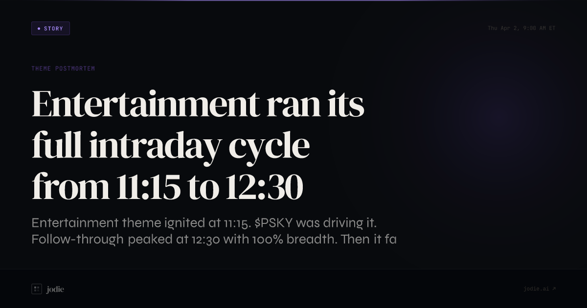 Entertainment ran its full intraday cycle from 11:15 to 12:30