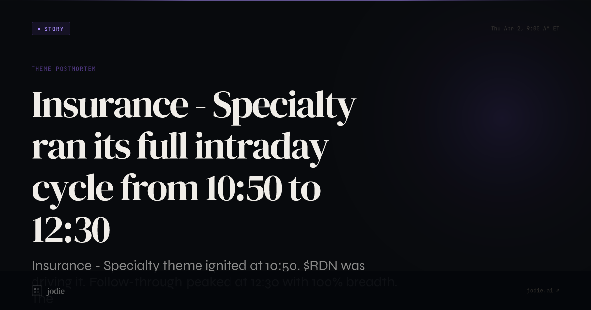 Insurance - Specialty ran its full intraday cycle from 10:50 to 12:30