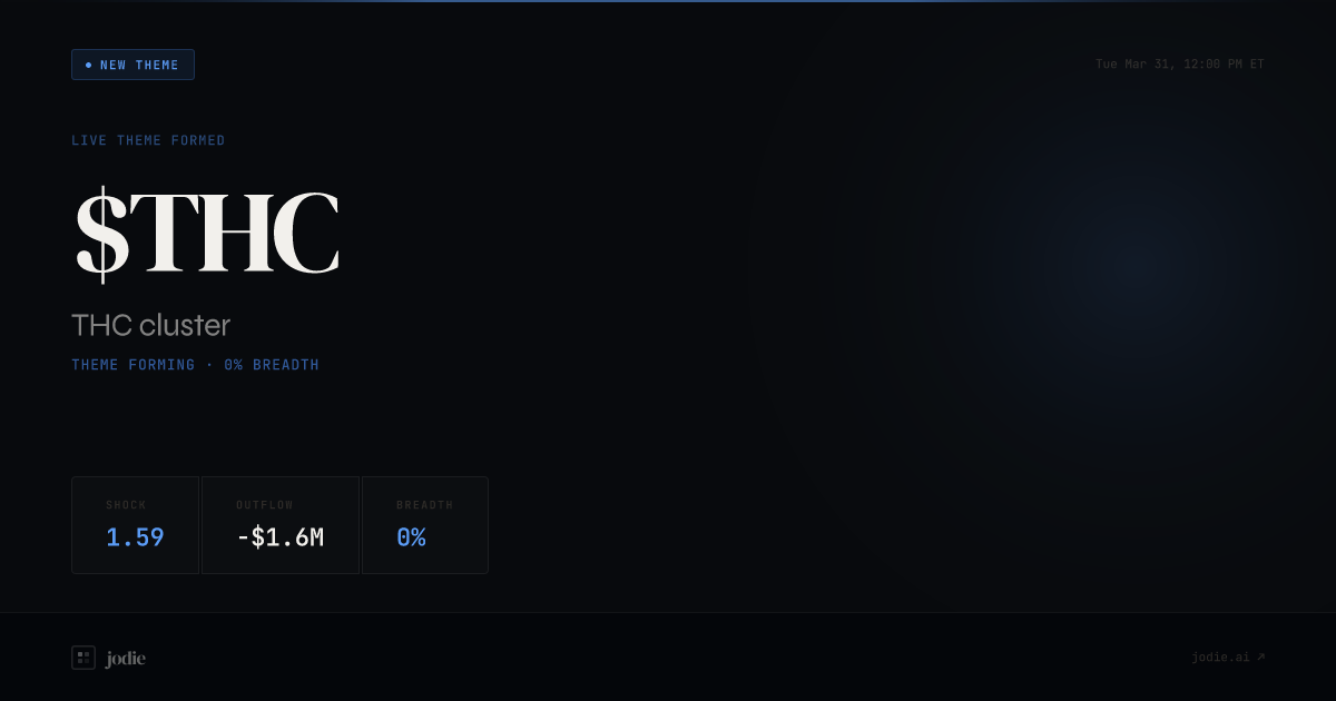 $THC has formed as a new live theme at Tue, Mar 31 at 12:00 PM ET. Shock 1.59, breadth 0%. Outflow −$2M. Story: