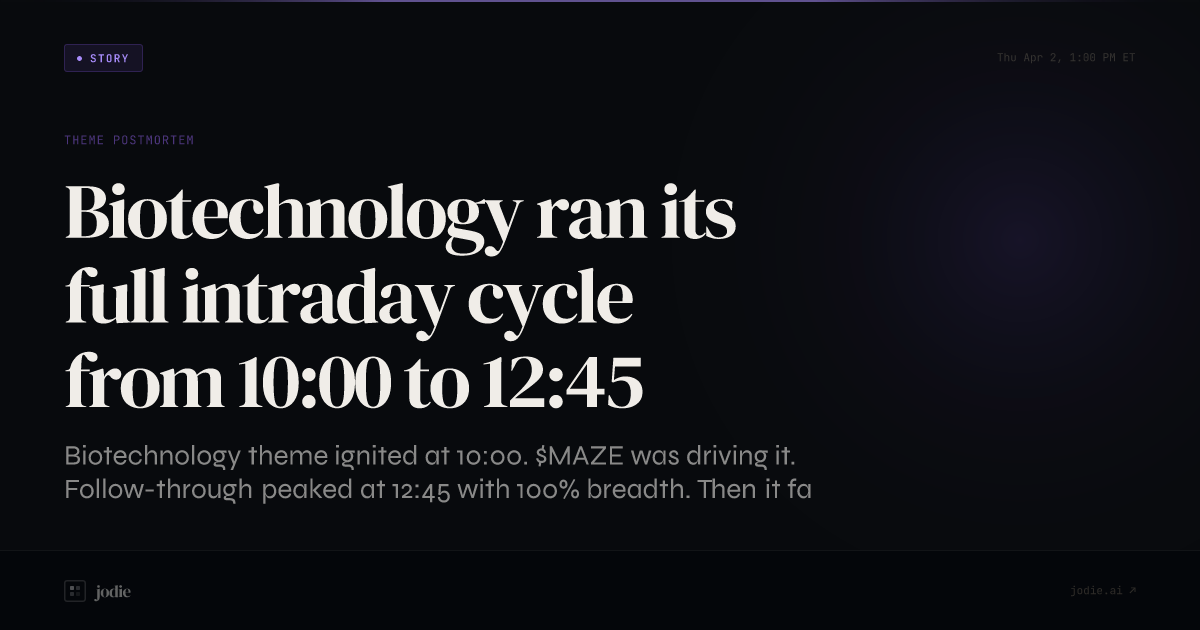 Biotechnology ran its full intraday cycle from 10:00 to 12:45
