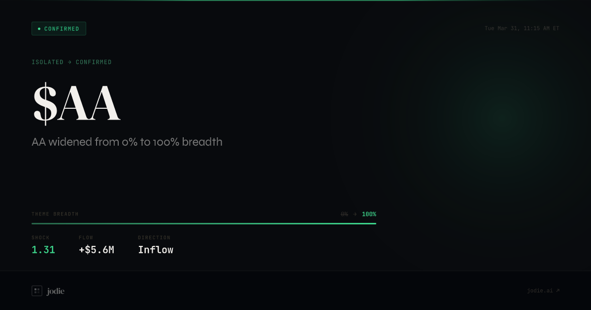 $AA widened from 0% to 100% breadth at Tue, Mar 31 at 11:15 AM ET. Shock 1.31. Story: