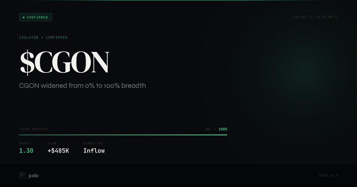 $CGON widened from 0% to 100% breadth at Tue, Mar 31 at 12:15 PM ET. Shock 1.30. Story: